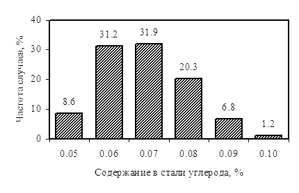 Рис. 1. Содержание основных элементов (углерод, марганец, кремний) в исследуемой выборке (5 270 партий) |