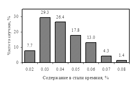 Рис. 1. Содержание основных элементов (углерод, марганец, кремний) в исследуемой выборке (211 партий) |