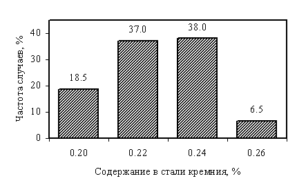 Рис. 1. Содержание основных элементов (углерод, марганец, кремний) в исследуемой выборке (54 партии) |