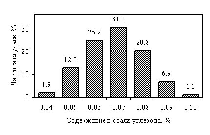 Рис. 1. Содержание основных элементов (углерод, марганец, кремний) в исследуемой выборке (7 551 партия) |